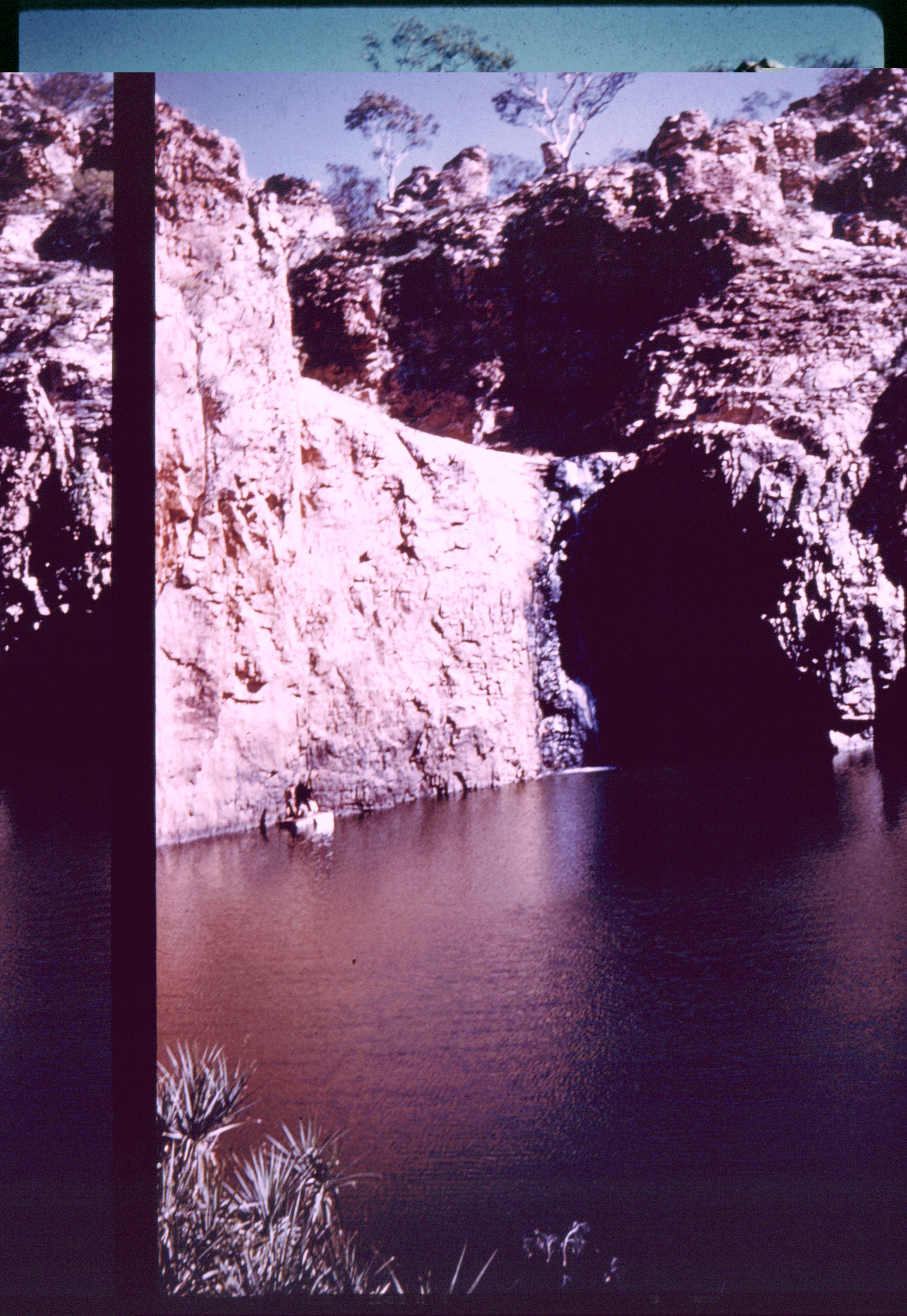 This is a waterfall on McArthur River Station. In front of it is a large, very deep, pool of fresh water (sweet water). Behind the waterfall is an area of "lost city" type formation. The rock has been eroded into many columns, the area having the appearance of a city of skyscrapers. To get to the pools above the falls is like moving through a maze with climbing along the way. Links http://www.territorystories.nt.gov.au/handle/10070/2735